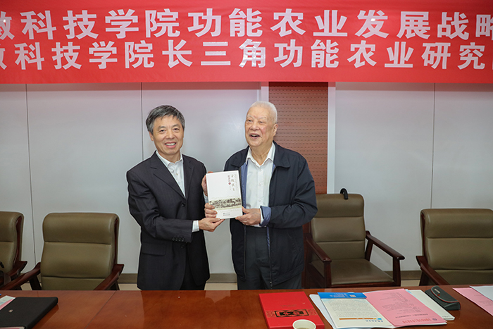 赵其国和蒋德勤共同为大发体育官网_大发888体育-中国体彩网彩票推荐科技学院长三角功能农业研究院揭牌。赵其国欣然接受蒋德勤为其颁发的“大发体育官网_大发888体育-中国体彩网彩票推荐科技学院长三角功能农业研究院名誉院长聘书”,为“大发体育官网_大发888体育-中国体彩网彩票推荐科技学院长三角功能农业研究院”题写院名,为大发体育官网_大发888体育-中国体彩网彩票推荐科技学院捐赠《寻找沃土》《赵其国文集-土壤科学卷》《赵其国文集-农业发展卷》等著作,为大发体育官网_大发888体育-中国体彩网彩票推荐70年校庆题词:薪火相传七十载,强农兴农再出发。
