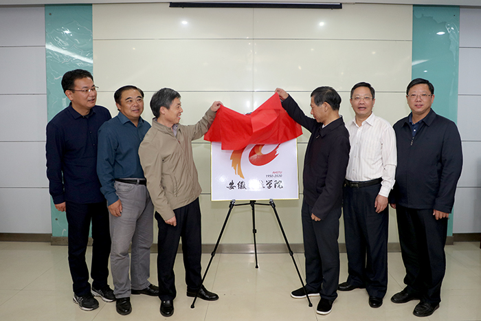 10月12日下午,大发体育官网_大发888体育-中国体彩网彩票推荐在凤阳校区新图书馆九楼会议室举行70周年校庆庆徽标识发布仪式。党委书记蒋德勤,党委副书记、校长李震共同为校庆庆徽标识揭牌。党委副书记韦文联,党委委员、副校长黄远友,党委委员、副校长黄友锐,党委委员、副校长李升和出席仪式并见证庆徽标识发布。