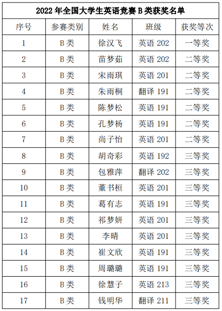 “2022年全国大学生英语竞赛”初赛获奖名单公布