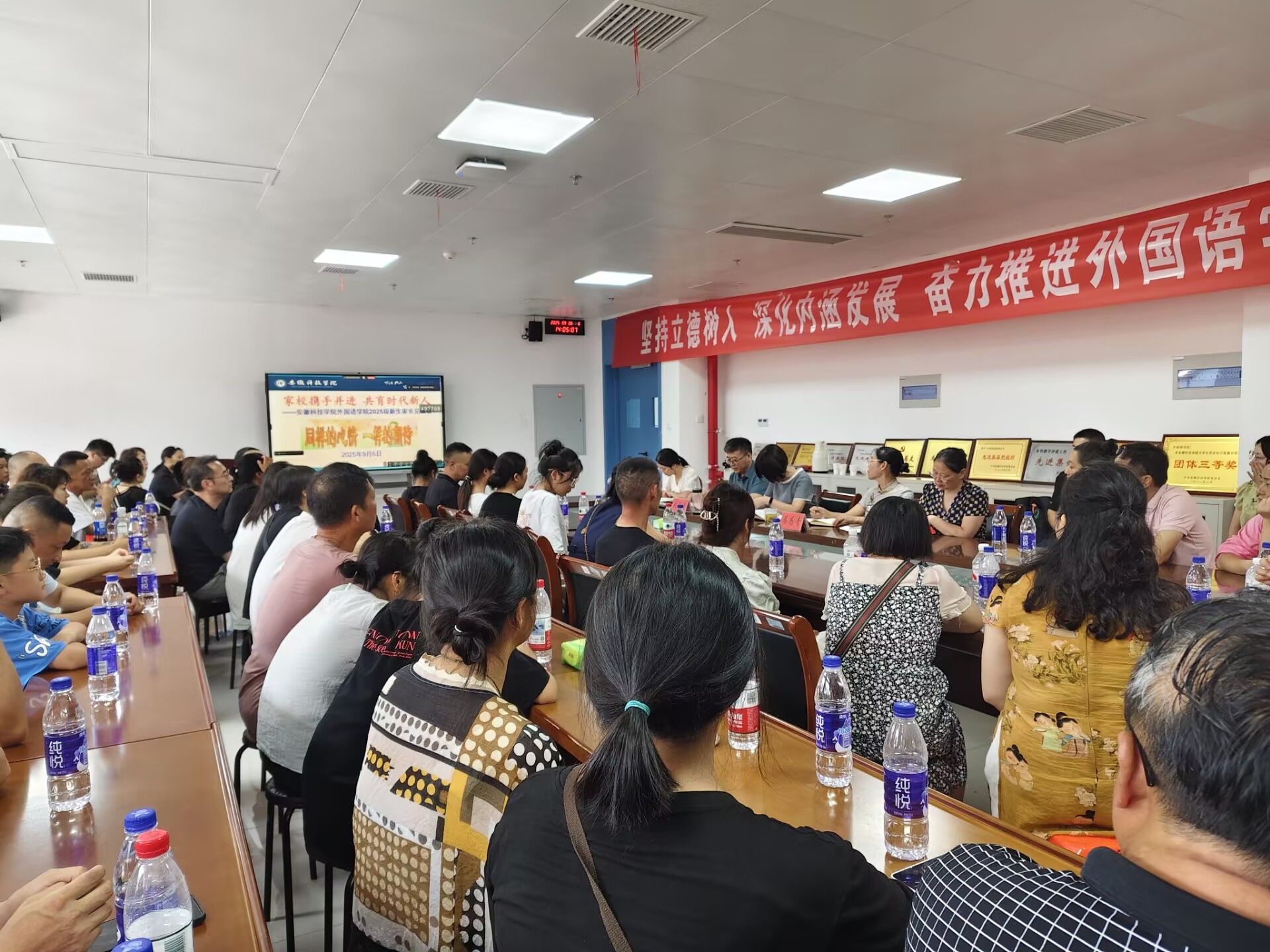 为进一步加强家校协同育人,9月6日下午,外国语学院在学院会议室召开2025级新生家长座谈会。学院党政领导、新生辅导员及2025级全体新生家长参加会议。