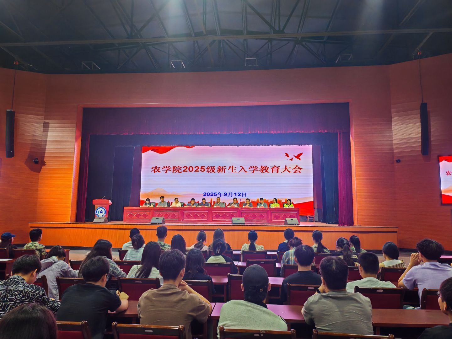 9月12日晚,农学院在大学生活动中心召开2025级新生入学教育大会。农学院党政领导、全体辅导员、2025级本科生新生和硕士研究生新生参加大会。会议由农学院党委副书记(主持工作)唐仁生主持。