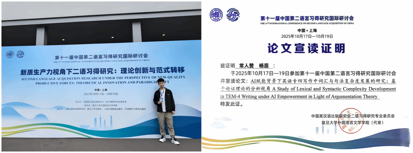 10月17日至19日,第十一届中国第二语言习得研究国际研讨会在复旦大学召开。外国语学院三项研究成果入选核心分论坛汇报,涵盖积极心理学干预、AI赋能教学与语言测试优化方向。