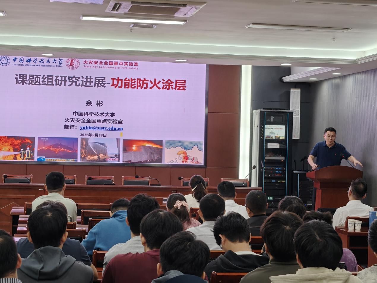 9月29日,学院特邀中国科学技术大学火灾安全全国重点实验室余彬教授为学院师生作“功能防火涂层”主题报告。余彬教授系统阐述了功能防火涂层的阻燃机理,分享了团队通过构建多重键交联网络,解决传统防火涂料耐水性、力学性能及耐高温性不足等难题的创新成果,以及其产业化应用过程。
