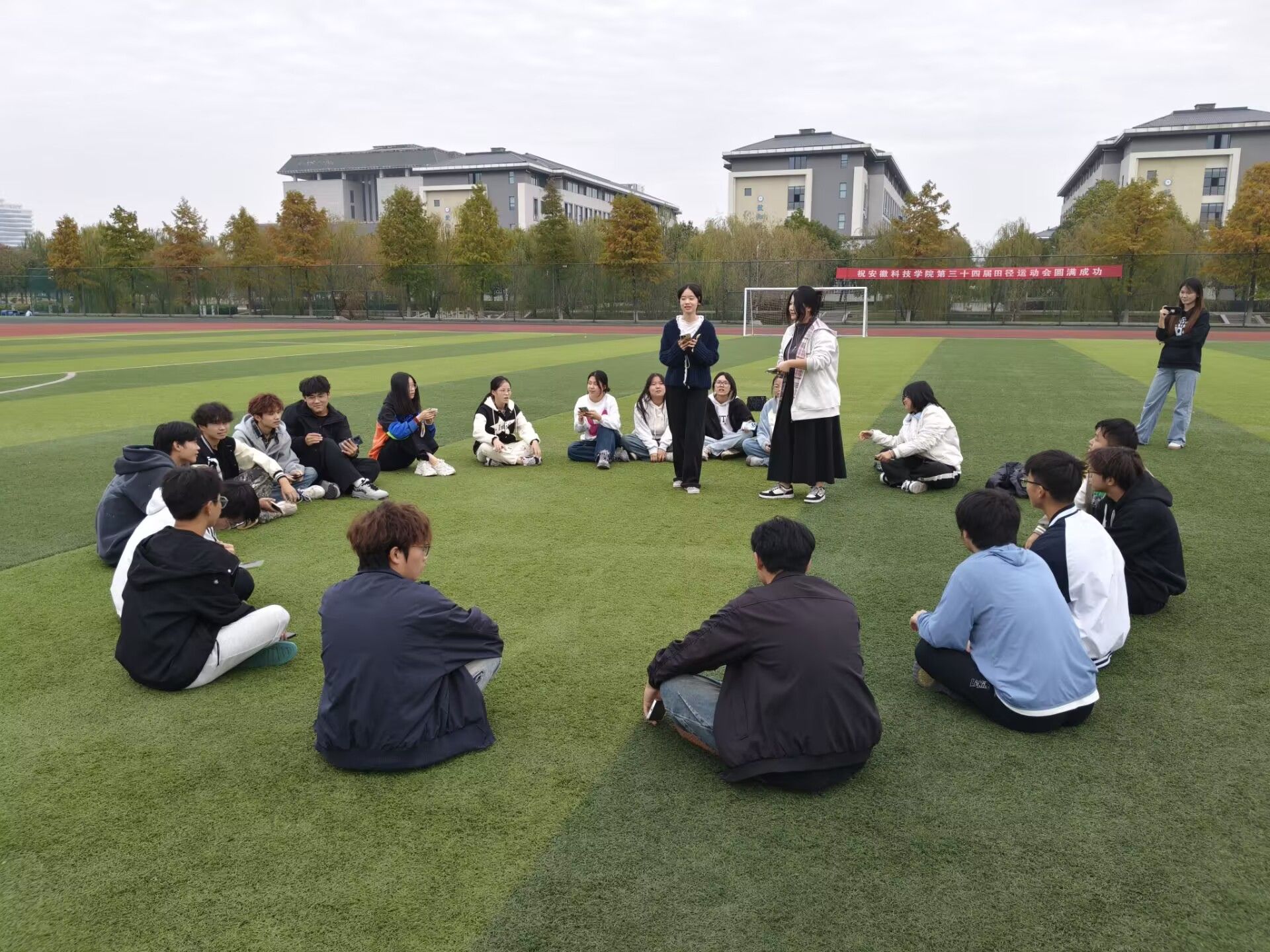 在各班心理委员清晰介绍团辅主题、目标与流程后,“大风吹”“滚雪球”“桃花桃花朵朵开”“心有灵犀” 等精心设计的互动游戏依次展开。从破冰环节的趣味指令互动、快速互换位置,到记忆分享类时的信息复述、创意展示;再从团队协作类的抱团游戏、暖心赞美,到情景演绎类的热词猜测、心理场景模拟。整场活动节奏紧凑、氛围热烈,同学们积极参与、全情投入,现场欢声笑语不断,陌生感在互动中逐渐消融,信任感与协作意识在游戏中悄然提升,最后全体新生围成大圈开展“真情告白”,分享收获与期待,在温馨交流中定格集体记忆。