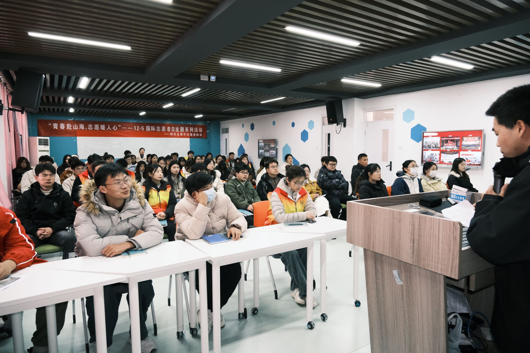 系列活动以12月3日的 “遇见最好的自己” 志愿服务礼仪培训拉开序幕。活动采用线上线下结合形式,邀请中国形象协会高级培训讲师赵菁教授主讲,围绕志愿服务仪容仪表、沟通技巧、应急场景应对等核心内容,通过鲜活案例与实操演示,为25级研究生、青协成员、支教团及青马工程学员系统梳理礼仪规范。校团委书记张聪在总结中强调,志愿服务礼仪是文明传递的重要载体,鼓励志愿者将所学转化为实践,让志愿行动更有温度、更具专业度。