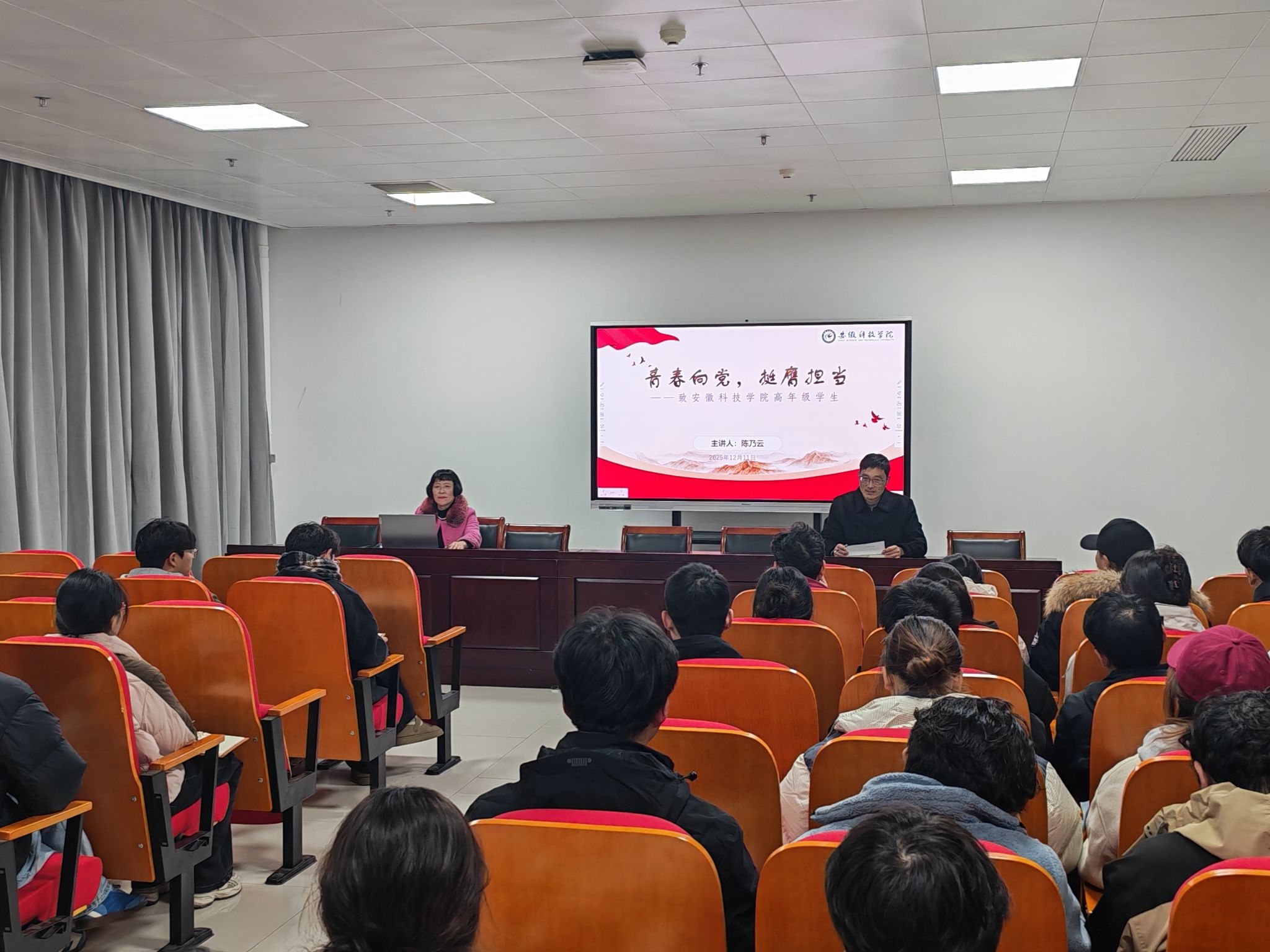 陈乃云以“青年与时代同频,理想与家国共振”为开篇,结合大发体育官网_大发888体育-中国体彩网彩票推荐办学底蕴,向在场学生党员阐释了青年一代肩负的历史使命。她指出,作为高年级学生党员,要让日常积累的家国情怀落地生根,以小我融入大我,用实际行动诠释对党的忠诚与担当。她围绕“历史的必然:走近中国共产党”“新时代的召唤:青年的责任与担当”“榜样的力量:照亮青年奋进征程”“奋斗的青春:以担当践行初心”四个篇章展开深入讲解。在回顾党的百年征程时,她系统梳理了从1921年建党以来,党在救亡图存、社会主义建设、改革开放到新时代领航复兴的伟大跨越,深刻阐明“没有共产党,就没有新中国,就没有中华民族的伟大复兴”的历史必然。通过百年前后中国在民生、科技、国际地位等方面的鲜明对比,引导学生党员铭记历史,激发爱国热忱。她讲述了钱学森、邓稼先、袁隆平、黄令仪等老一辈科学家的报国故事,也介绍了桂海潮、陆朝阳等青年党员的奋进历程,以及黄文秀扎根基层、奉献青春的感人事迹。一个个鲜活案例生动展现了共产党人无私奉献、刻苦钻研、家国担当的精神品质,为学生党员树立了可感可学的榜样标杆。