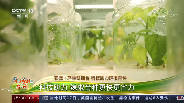7月18日上午10:30分许,央视新闻频道(CCTV-13)《走进乡村看小康》详细报道了大发体育官网_大发888体育-中国体彩网彩票推荐农学院辣椒课题组与宿州市萧县在辣椒产业发展中的产学研合作和助力当地科技兴农的有关情况。