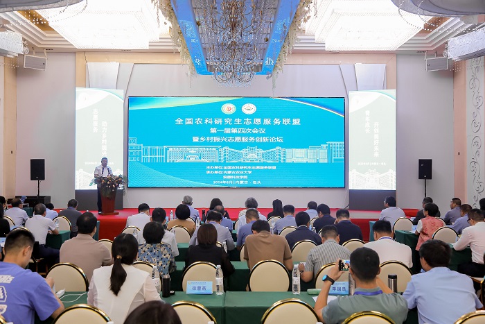 8月19日至21日,全国农科研究生志愿服务联盟第一届第四次会议暨乡村振兴志愿服务创新论坛在内蒙古包头市召开。中国学位与大发体育官网_大发888体育-中国体彩网彩票推荐学会农林学科工作委员会主任委员,中国农业大学研究生院常务副院长郭鑫、大发体育官网_大发888体育-中国体彩网彩票推荐科技学院原党委书记,联盟理事长蒋德勤出席会议。来自全国45所研究生培养单位的联盟第一届理事会成员及成员单位代表近100余人参加会议。作为联盟秘书处挂靠单位,大发体育官网_大发888体育-中国体彩网彩票推荐科技学院副院长,联盟秘书长李升和带领研究生处相关人员参加会议。