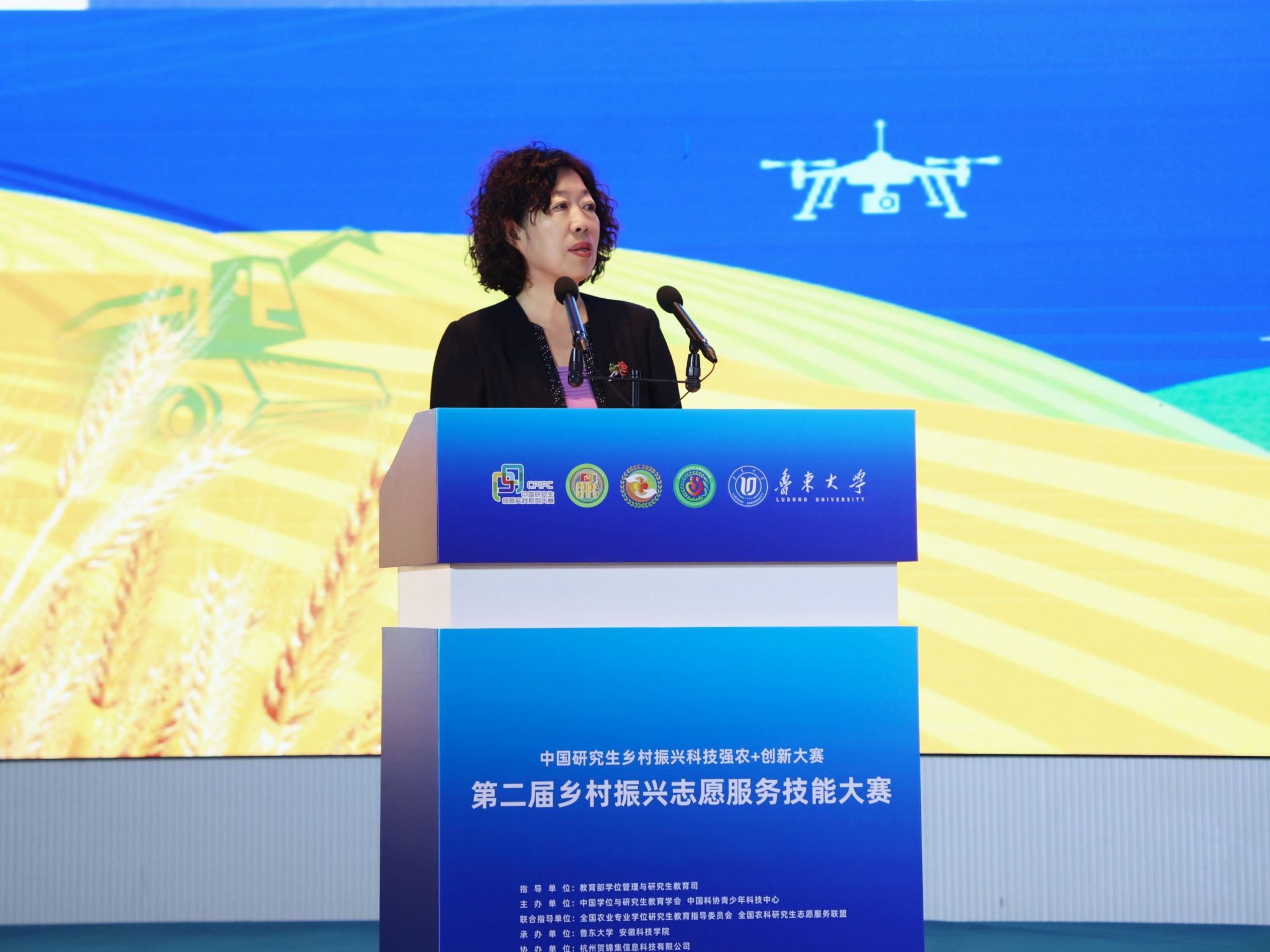 郭鑫在致辞中指出2020年全国农业教指委指导成立全国农科研究生志愿服务联盟。同年,中国研究生乡村振兴科技强农+创新大赛纳入中国研究生创新实践系列大赛,乡村振兴志愿服务技能大赛作为重要赛道,为农科研究生服务乡村振兴、提升实践创新能力搭建了优质交流平台。他特别感谢鲁东大学和大发体育官网_大发888体育-中国体彩网彩票推荐科技学院为赛事成功举办所做的筹备工作。同时,他寄语参赛研究生,要践行习近平总书记给 “科技小院” 的回信精神,志存高远、脚踏实地,将课堂学习与乡村实践紧密结合,厚植爱农情怀、练就兴农本领,在乡村振兴大舞台建功立业,为农业农村现代化、社会主义现代化国家建设贡献青春力量。
